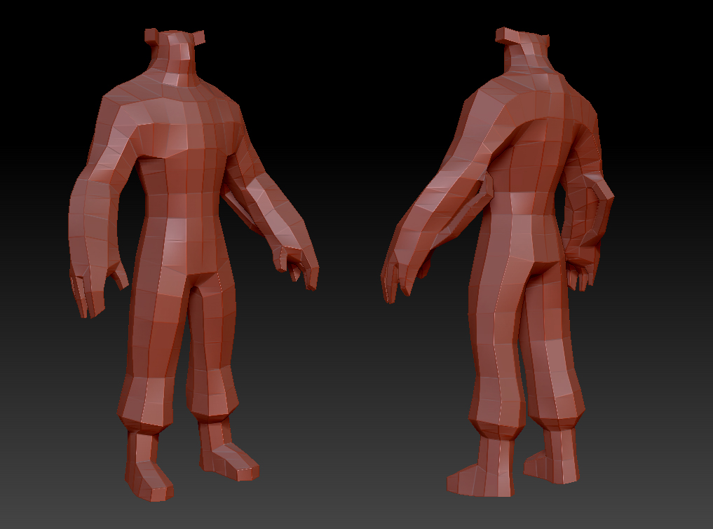 まずローポリで基本的な形を作り、Zbrushに持ってきたあとMoveブラシなどで大まかな形を修正してゆく。
